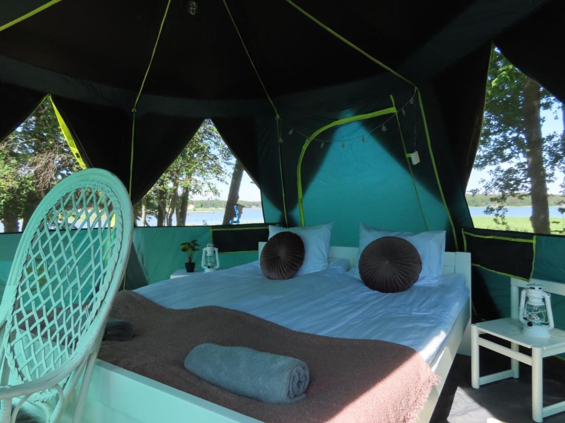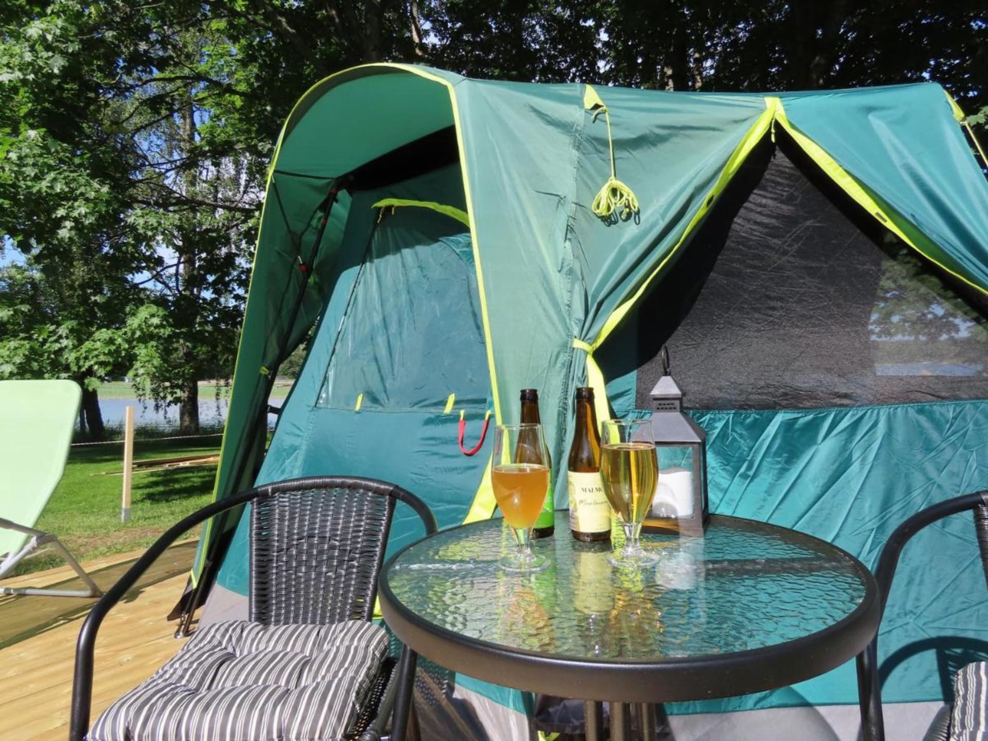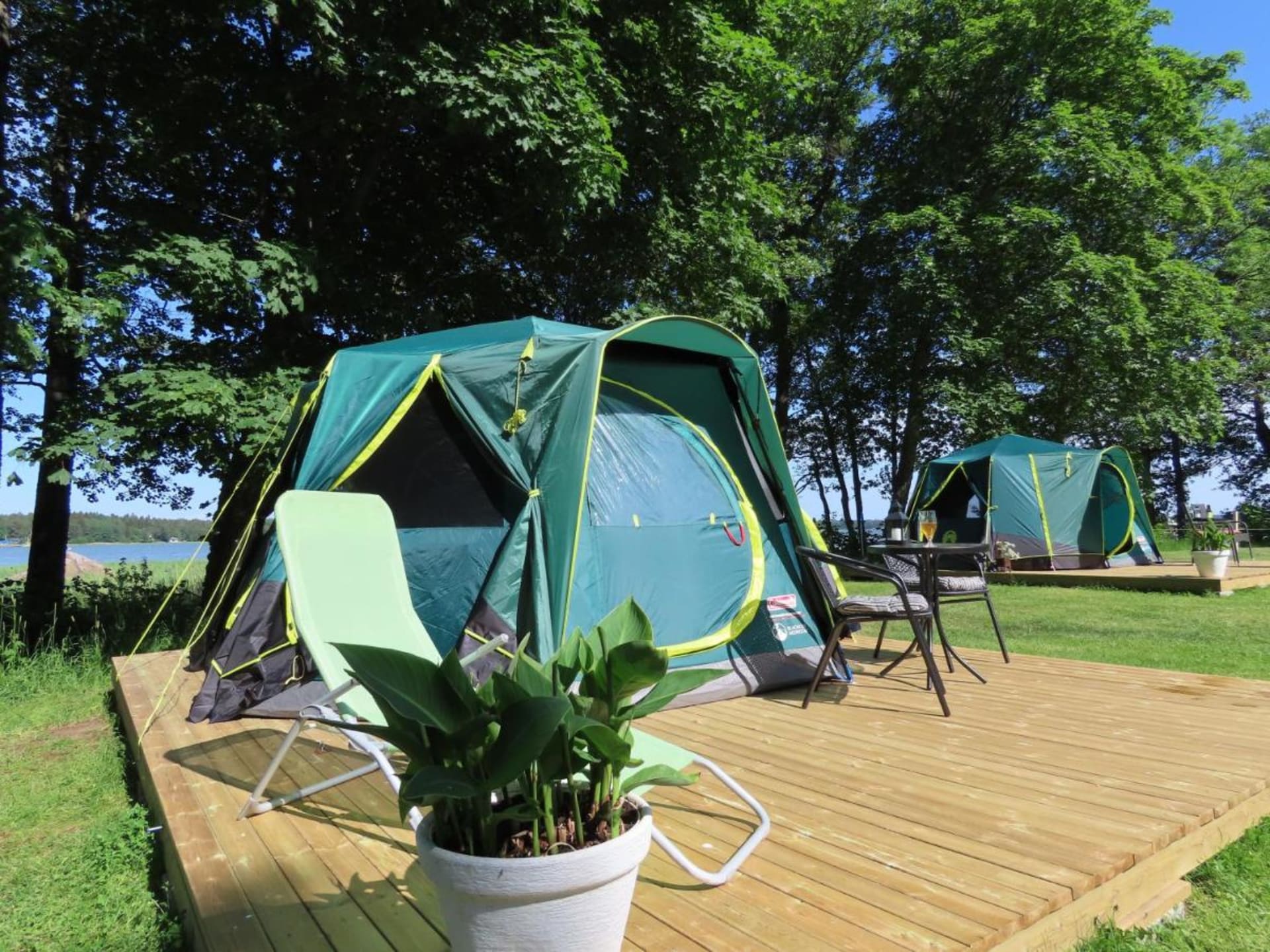 Loviisa Camping has 3 tent hotels (glamping). Tents include beds for 2 persons and own little terraces.